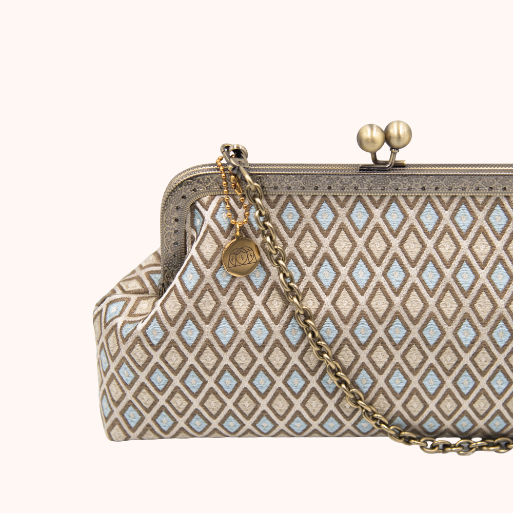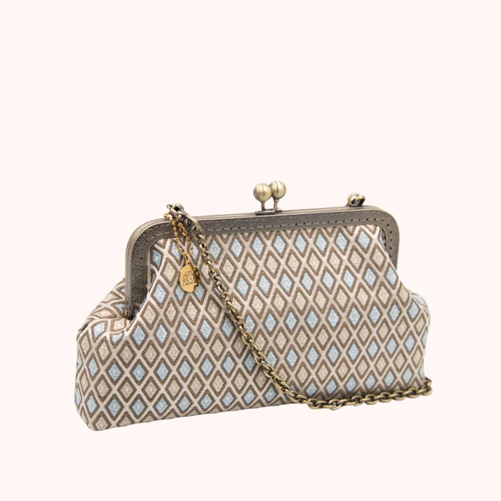 La nostra Lea Cristalli è realizzata in jacquard, ha una chiusura colore bronzo di 20cm e una catena rimovibile di 60cm, al suo interno è foderata in raso.