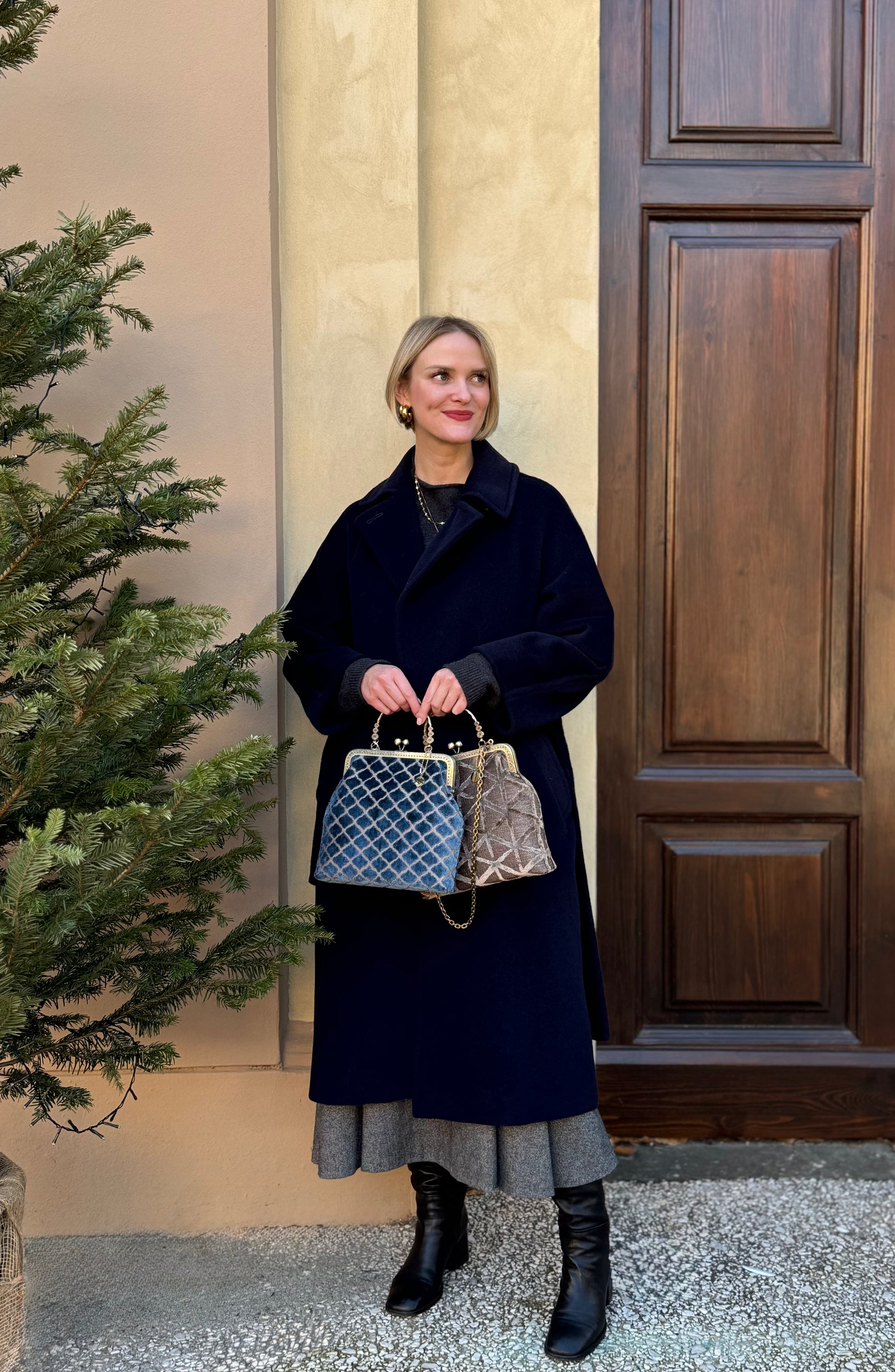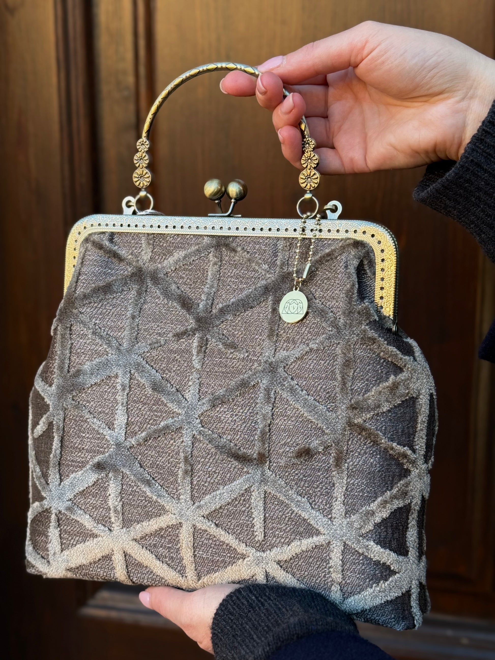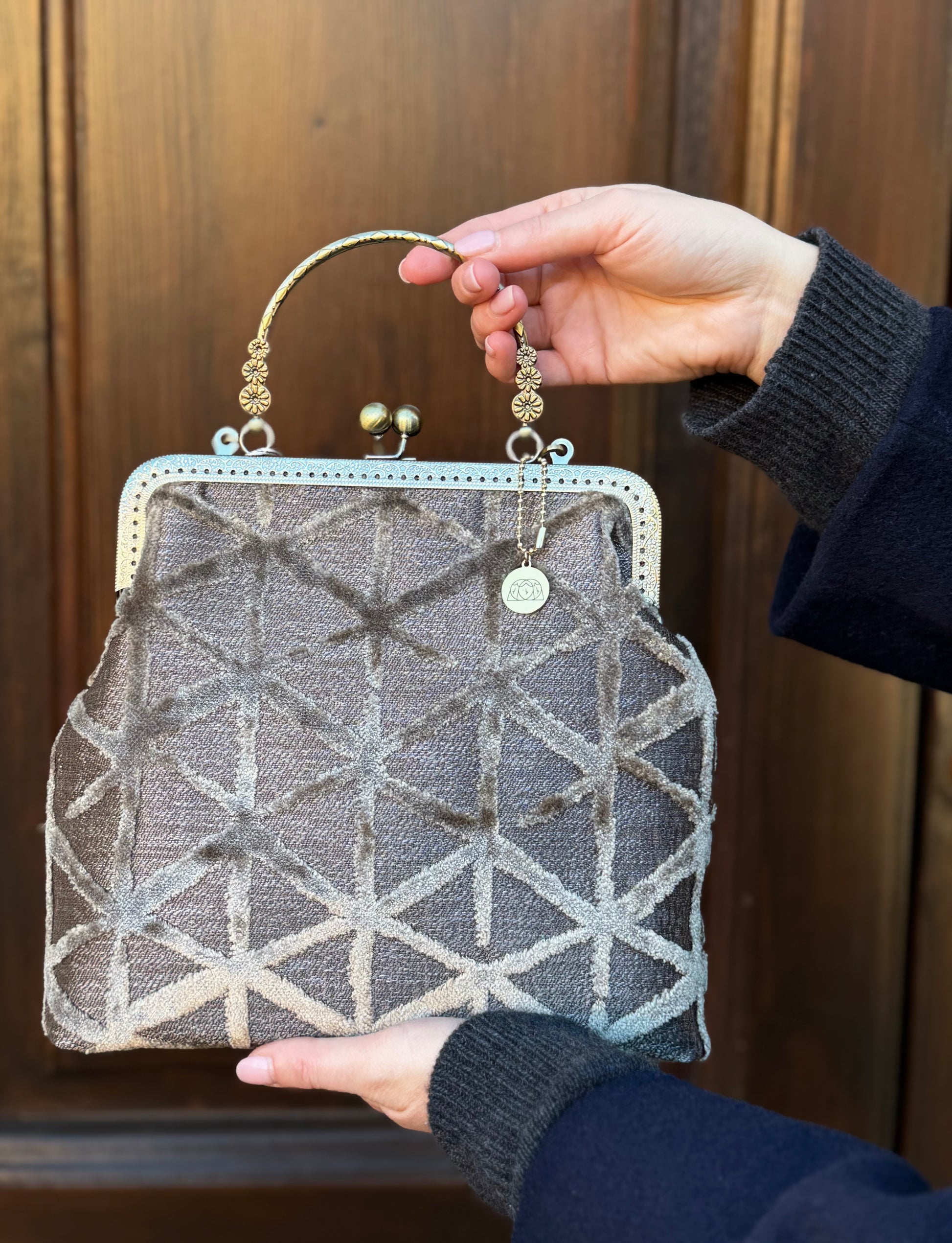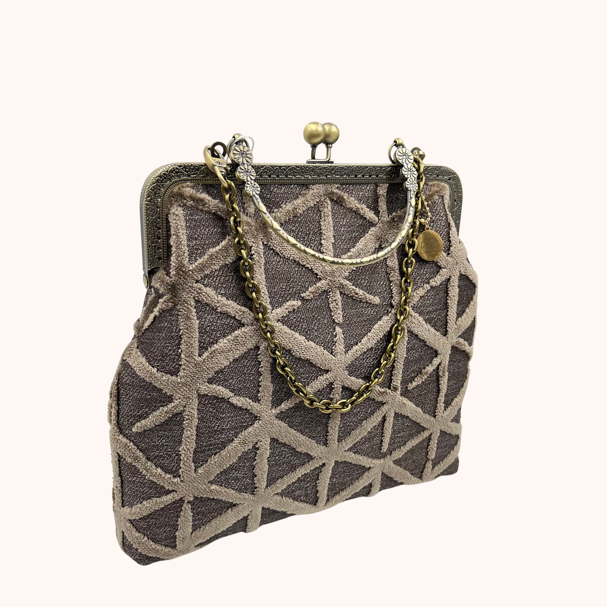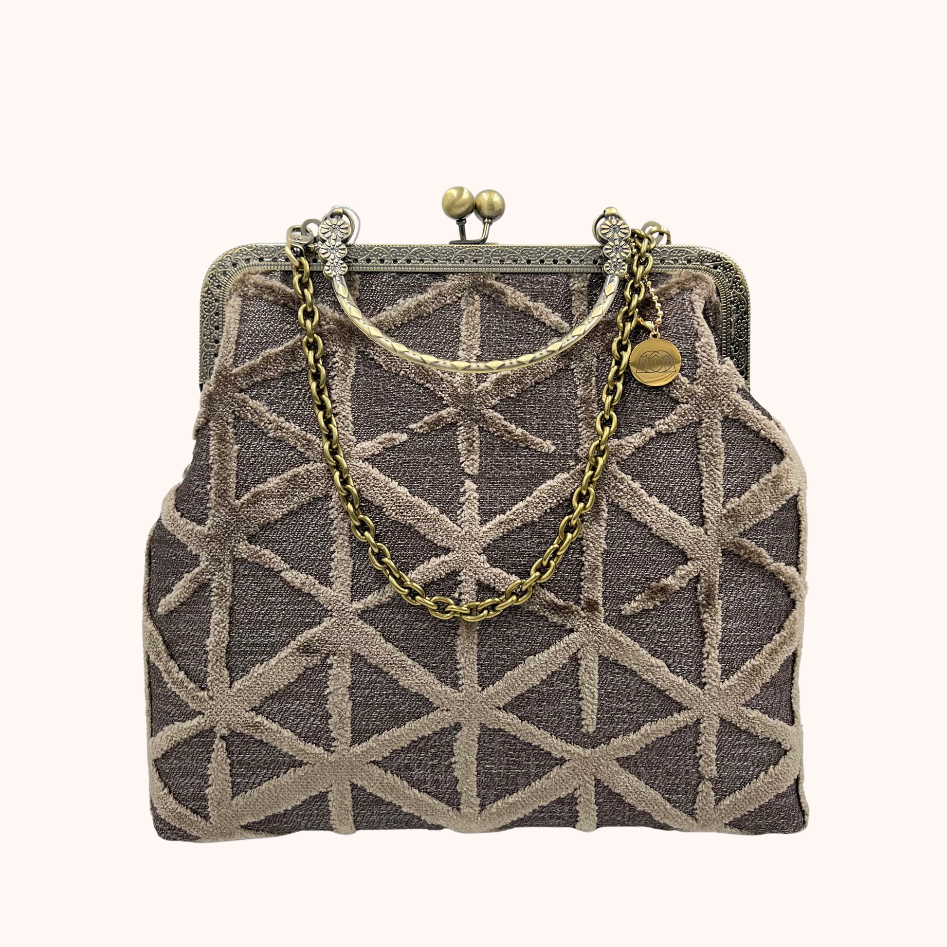 La nostra Margot Étoile è realizzata in velluto operato, ha una chiusura colore bronzo di 20cm e una catena rimovibile di 60cm. Al suo interno è foderata in raso.