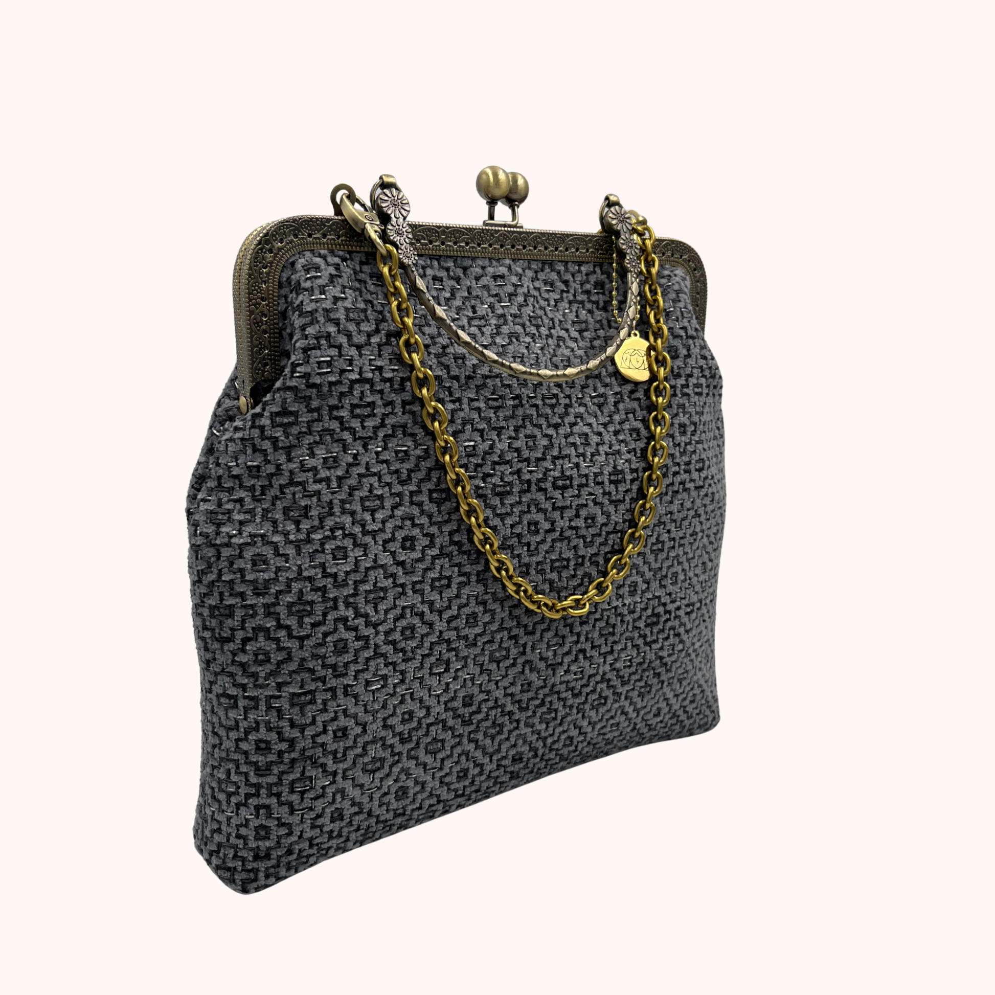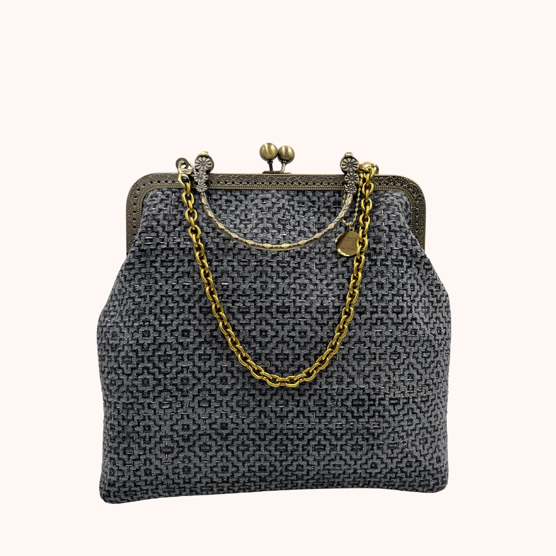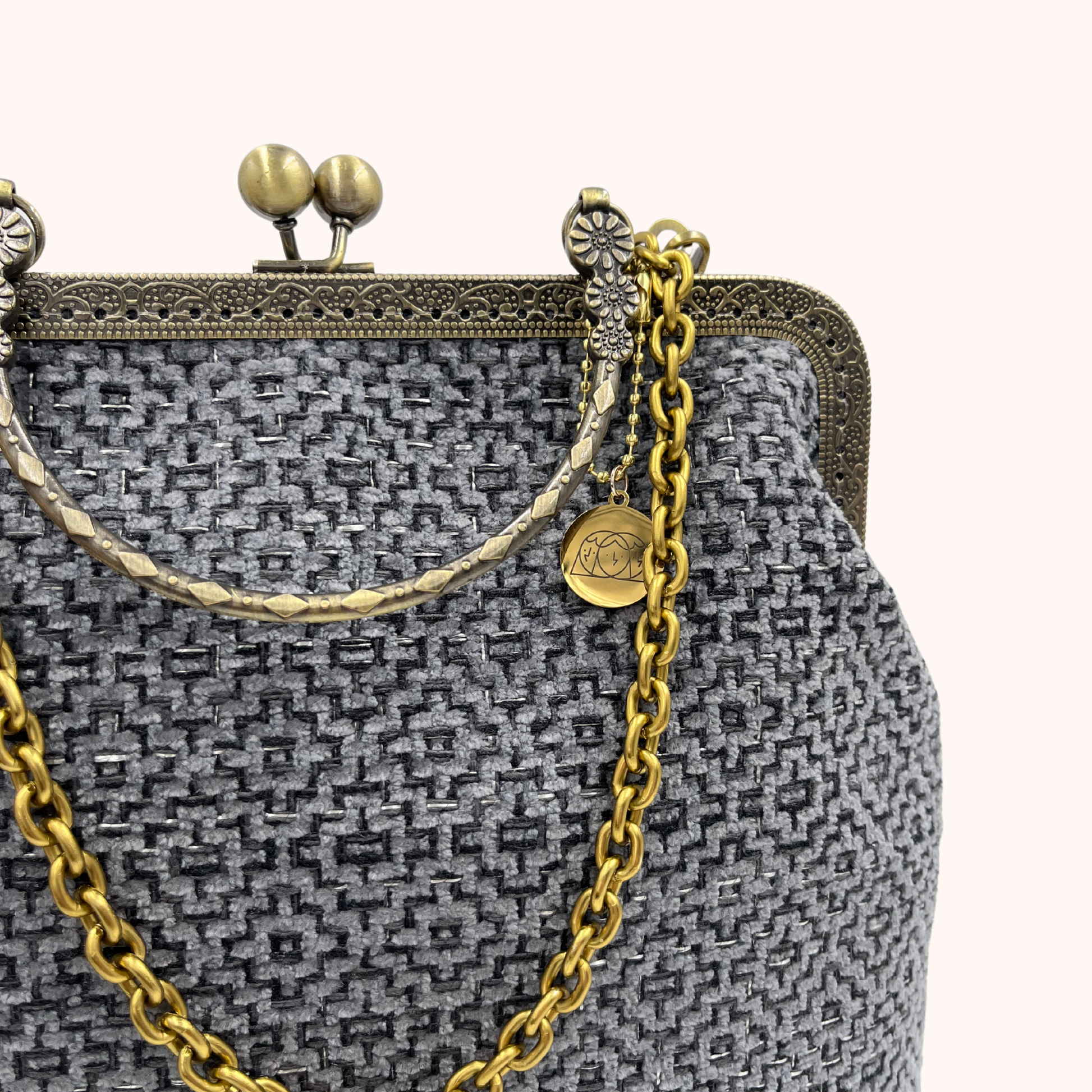 La nostra Margot Grey è realizzata in velluto operato, ha una chiusura colore bronzo di 20cm e una catena rimovibile di 60cm. Al suo interno è foderata in raso.
